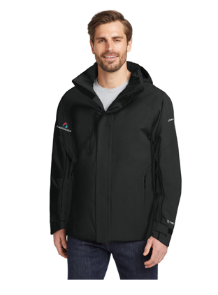 Two element-fighting WeatherEdge 5K/5K fabrics come together in this jacket for highly waterproof, breathable performance. Fully seam-sealed, this jacket also features an exclusive StormRepel® durable water-repellent (DWR) coating for additional weather protection. Four-way stretch for easy mobility. Adjustable hood with locking drawcord, waterproof molded front zippered pockets, adjustable tab cuffs with hook and loop closures. Decoration access pocket. Adjustable locking drawcord hem. Contrast Eddie Bauer and WeatherEdge heat transfer logos on left sleeve. Made of 94/6 poly/spandex and 92/8 poly/spandex.