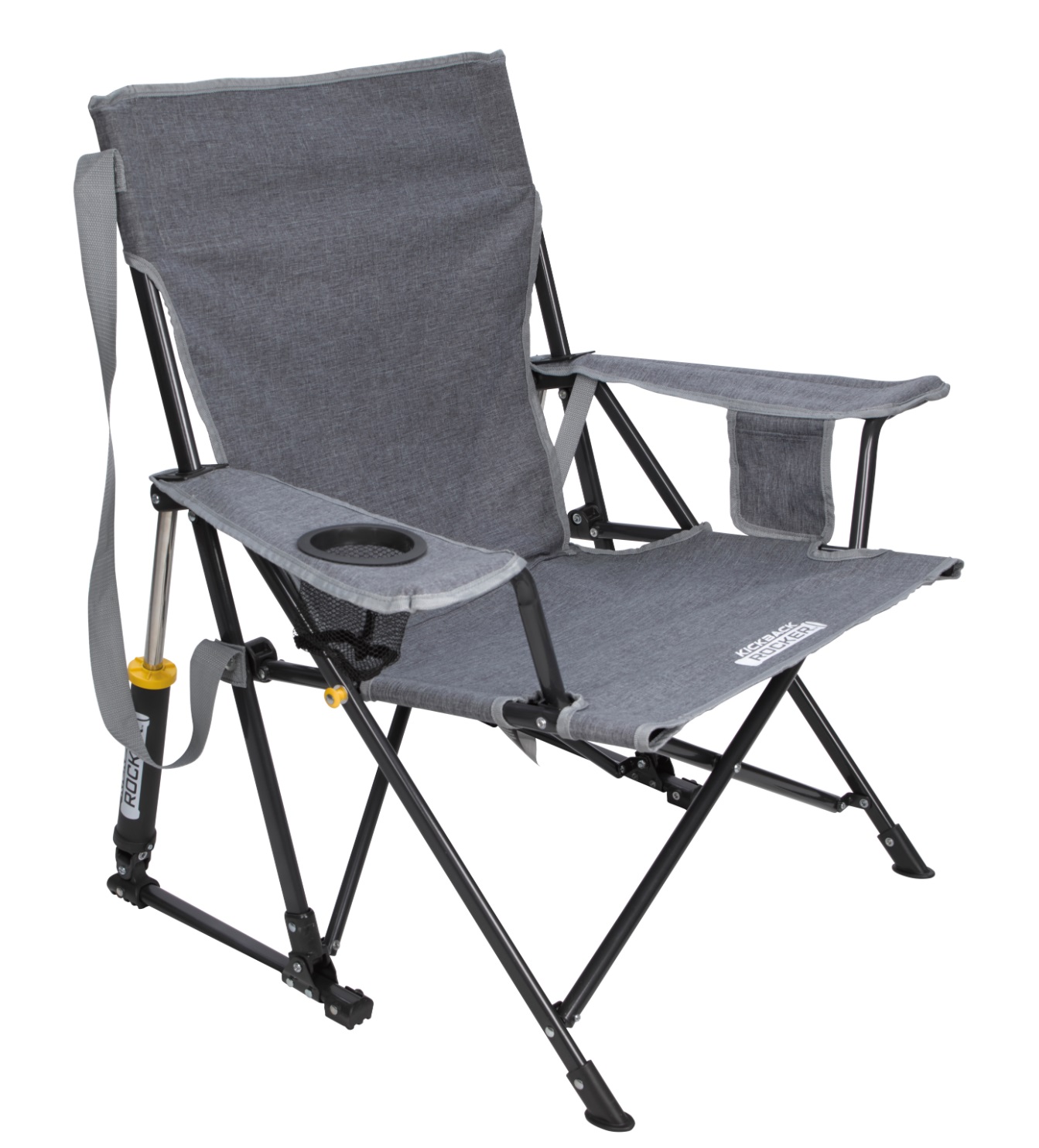 Whether you’re getting the most out of life in the great outdoors or on the sidelines cheering on your favorite athlete, the GCI Outdoor™ Kickback Rocker™ is built for comfort. This compact outdoor chair features a patented technology that delivers a smooth rocking action on flat, hard, or soft terrain. It’s built slightly lower to the ground than standard camp chairs, providing a relaxed feeling the moment you sit down. The bagless design makes it easy to pack up and go – just use the built-in carry strap to easily tote it. Supports 250 lbs max. The fabric used on this chair has been tested and complies with California Prop 65 requirements.