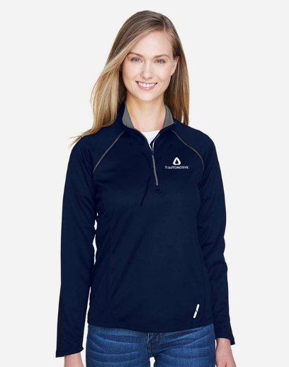 • Subtle contrast coverstitch details at raglan and back sleeves