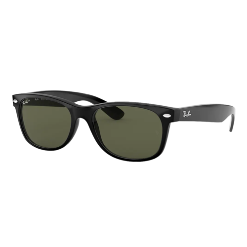 Ray-Ban RB2132 New Wayfarer sunglasses are a slightly smaller interpretation on the most famous style in sunwear. The iconic Ray-Ban Wayfarer is immediately recognizable anywhere in the world. The Ray-Ban signature logo is displayed on both sculpted temples. These sunglasses allow the wearer to enjoy a classic, celebrated style while adding their own individuality. Eye Size: 55; Frame: Black; Lens: Polarized Green Classic G-15; Lens Material: Crystal Polarized Glass